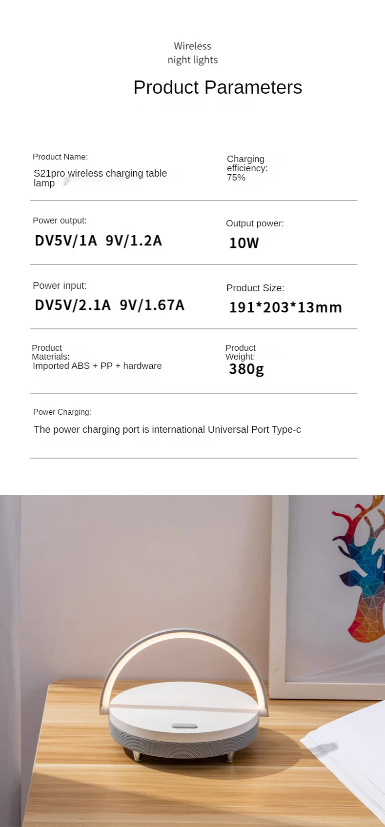 Wireless Chargers LED Lamp Bluetooth Speaker
